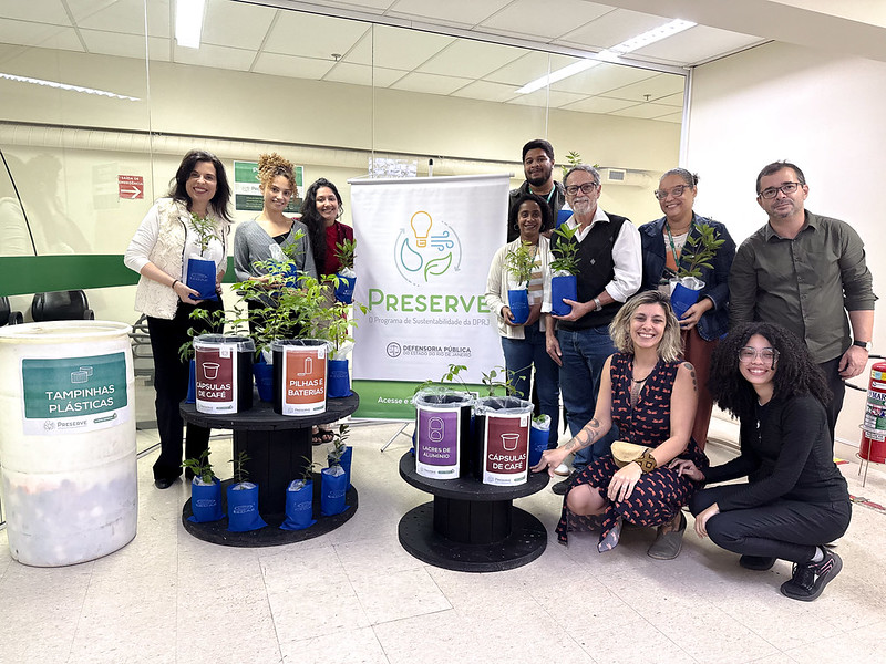 — Se cada um fizer um pouquinho, conseguiremos uma mudança gigantesca — A fala da Defensora Pública, e coordenadora da sede operacional do Edifício Garagem Menezes Côrtes, Dra. Georgia Cabeços, sintetiza bem o espírito do novo projeto da Defensoria Pública do Estado do Rio de Janeiro: o ponto de coleta Preserve, inaugurado na última quinta-feira (26) no prédio do Menezes, no Centro do Rio. A iniciativa convida defensores, residentes, servidores, estagiários, assistidos e visitantes a entregarem tampinhas plásticas, lacres de alumínio, cápsulas de café, pilhas e baterias — materiais que terão destinação adequada e, em muitos casos, serão revertidos para campanhas e ações sociais.